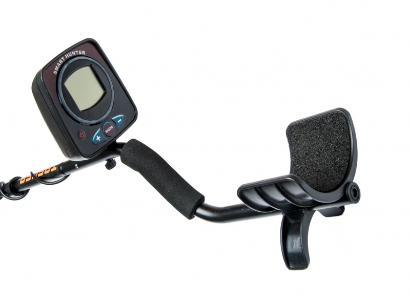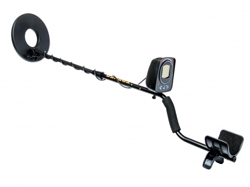 Конструкция металлоискателя состоит из 3-х секционной S-образной штанги с мягкими накладками на ручке и подлокотнике, 215 мм влагозащищенной катушки и блока управления. Собирается легко и не требует особых навыков и инструментов. Тип находки легко определить по указаниям дискриминатора, цвету индикатора (красный, синий) и благодаря трех-тональной озвучке. В приборе всего четыре кнопки управления. Кнопка включения запускает прибор в режиме «все металлы» на средней чувствительности. Для выключения необходимо нажать и удерживать кнопку 2 секунды. Кнопка MODE переключает режим настройки чувствительности SENS или управляет дискриминатором DISC. В металлоискателе 4 уровня чувствительности, которые переключаются кнопками «+» или «-» в подменю SENS. Для достижения максимального обнаружения по глубине, рекомендуется включить на максимум. Если в месте поиска прибор издает частые ложные сигналы, чувствительность немного откатывают назад. В приборе предусмотрены 3 сегмента идентификации целей: «IRON» - соответствует мелким и средним целям из черных металлов, например таким как гвозди, болты и осколки. При обнаружении – стрелка укажет на IRON, прозвучит низкий звуковой сигнал и загорится красный светодиод;