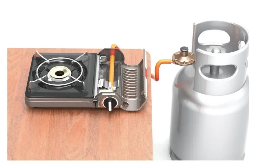 Для бытового пропанового баллона (LPG): Подключите газовый шланг (не входит в комплект) к плите и баллону, следуя инструкциям производителя.