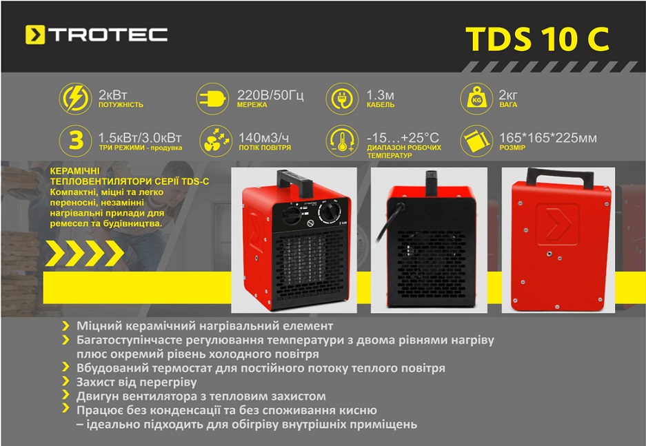 Будьте первым! Поставьте оценку, оставьте отзыв о товаре Электрическая тепловая пушка Trotec TDS 10 C: