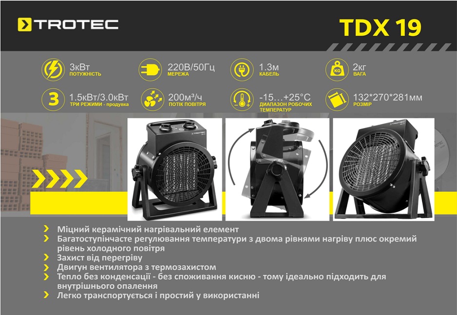 Будьте первым! Поставьте оценку, оставьте отзыв о товаре Электрическая тепловая пушка Trotec TDX 19 :