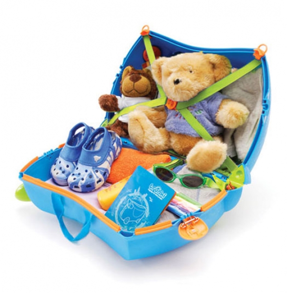 Trunki Terrance – оригинальный голубой детский чемодан, созданный для озорных детей, чтобы избавить их от скуки и усталости.