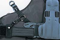 Нижняя часть плечевого ремня может крепиться к основному поясу в одном из двух положений, чтобы добиться комфортной посадки жилета по фигуре с учетом нагрузки на жилет.