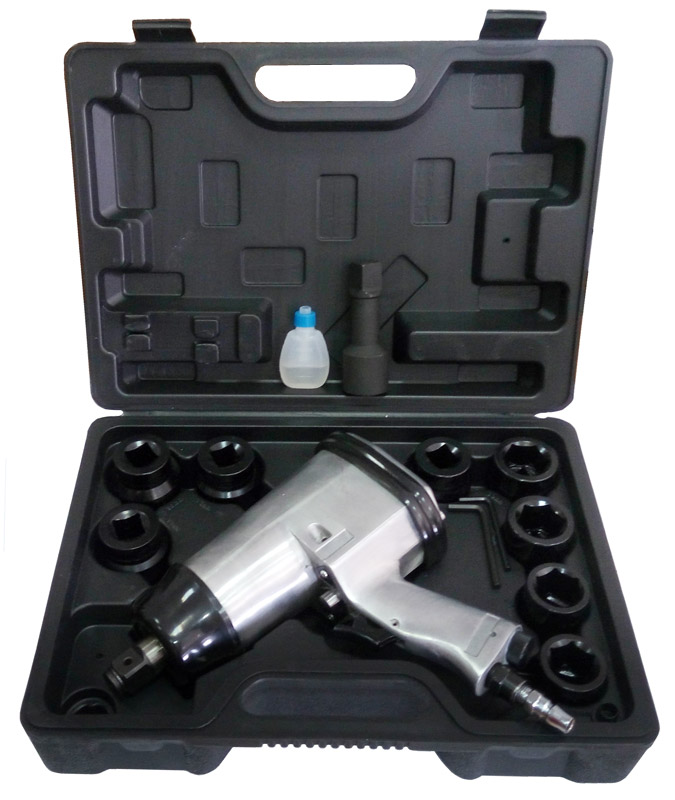 Пневмогайковерт К-4100К поставляется в пластиковом противоударном кейсе, полностью укомплектованном всем необходимым инструментом.