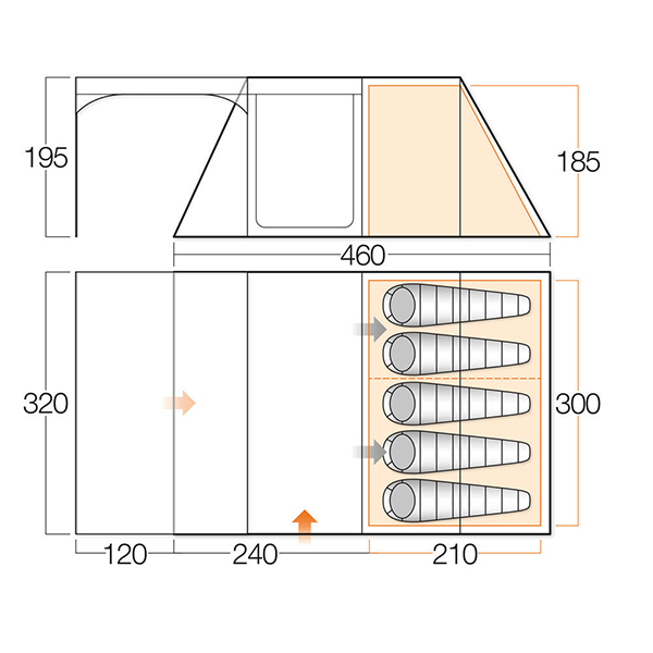 Внешняя палатка (ДхШхВ), мм: 4600 х 3200 х 1950