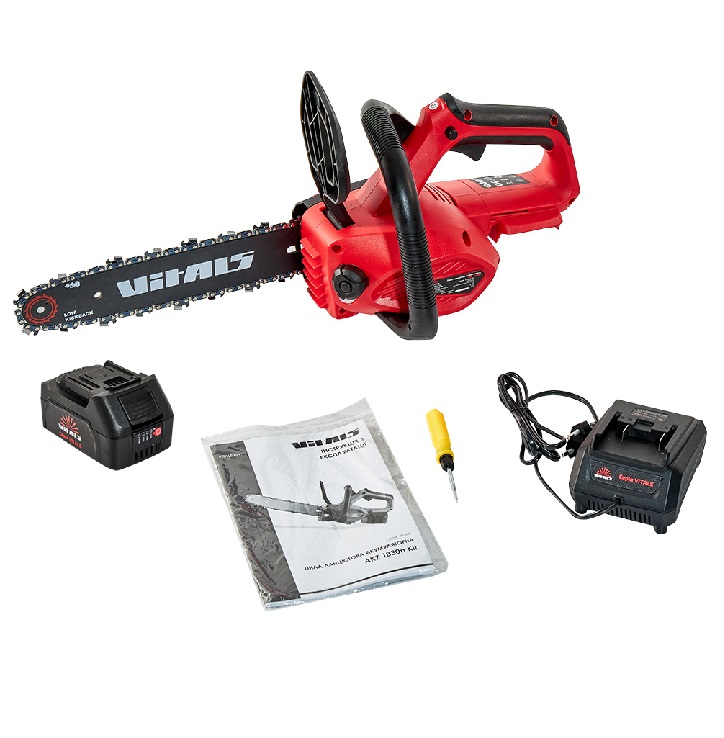 Одним из главных преимуществ пилы, по сравнению с бензиновыми и электрическими, является ее мобильность и экологичность. Отсутствие кабелей позволяет пользователям свободно перемещаться по рабочей зоне без ограничений. Это особенно важно при работе в лесу или на большой территории, где доступ к электросети может быть ограничен. Во время работы не выделяются вредные выбросы от паров бензина и выхлопных газов, по сравнению с бензиновыми аналогами, что позволяет использовать пилу даже в непроветриваемых помещениях, а уровень шума во время работы значительно ниже, что делает работу более комфортной для пользователя и окружающих. Кроме того, пила Vitals AKZ 1830n Kit имеет компактный и эргономичный дизайн, что обеспечивает комфортное использование даже в течение длительного времени. Комплект поставки включает в себя универсальный аккумулятор (4 А•час) и зарядное устройство (2 А), что дает возможность использовать пилу сразу после распаковки.