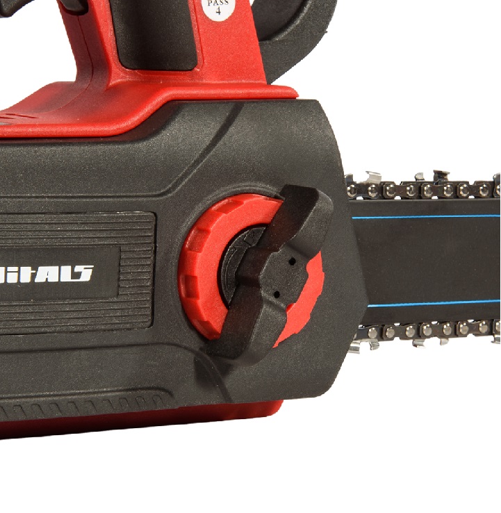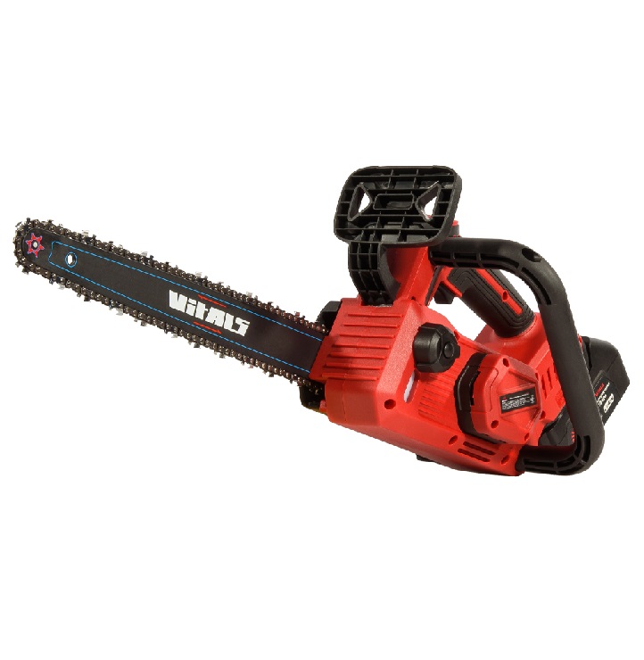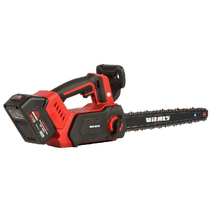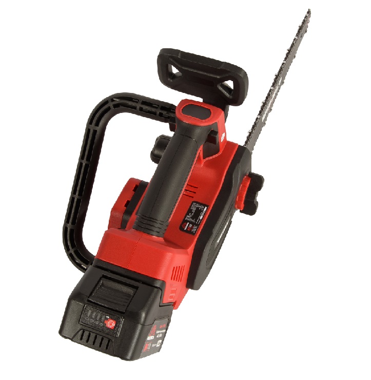 Система мгновенного торможения цепи быстро останавливает ее в случае обратного удара, повышая безопасность пользователя. Кнопка блокировки запуска предотвращает случайное включение устройства. Автоматическая система смазывания непрерывно подает масло на цепь и шину, снижая трение, перегрев и износ деталей, а также продлевает срок их службы. Эргономичная прорезиненная рукоятка обеспечивает надежный хват и точное управление пилой. Аккумулятор изготовлен по литий-ионной технологии, что обеспечивает высокую энергоэффективность, стабильную работу и ресурс более 400 циклов зарядки. Он имеет низкий уровень саморазряда и сохраняет работоспособность при длительном хранении. Батарея оснащена системой защиты от короткого замыкания, перегрева, перезаряда и глубокого разряда. Зарядное устройство с микропроцессорным управлением автоматически регулирует процесс зарядки, что повышает эффективность работы аккумулятора и продлевает срок его службы.