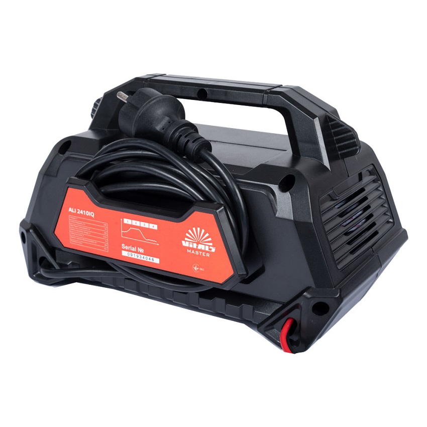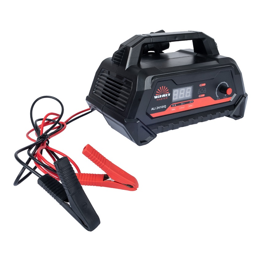 Зарядное устройство инверторного типа Vitals Master ALI 2410IQ предназначено для осуществления зарядки в автоматическом режиме свинцово-кислотных аккумуляторных батарей - автомобильных, тракторных, мотоциклетных и т.п., напряжением 12 В или 24 В и емкостью до 200 А/ч. Источником электропитания зарядного устройства инверторного типа служит однофазная сеть переменного тока напряжением 220 В частотой 50 Гц или миниэлектростанция с аналогичными характеристиками электротока. Максимальная мощность потребления составляет 350 Вт во время зарядки батарей напряжением 12 В и 550 Вт во время зарядки батарей напряжением 24 В. Ток зарядки может достигать значения 10 А. Зарядное устройство состоит из преобразователя напряжения инверторного типа, выпрямителя переменного тока, цифрового дисплея тока зарядки, органов управления и систем охлаждения и безопасности.