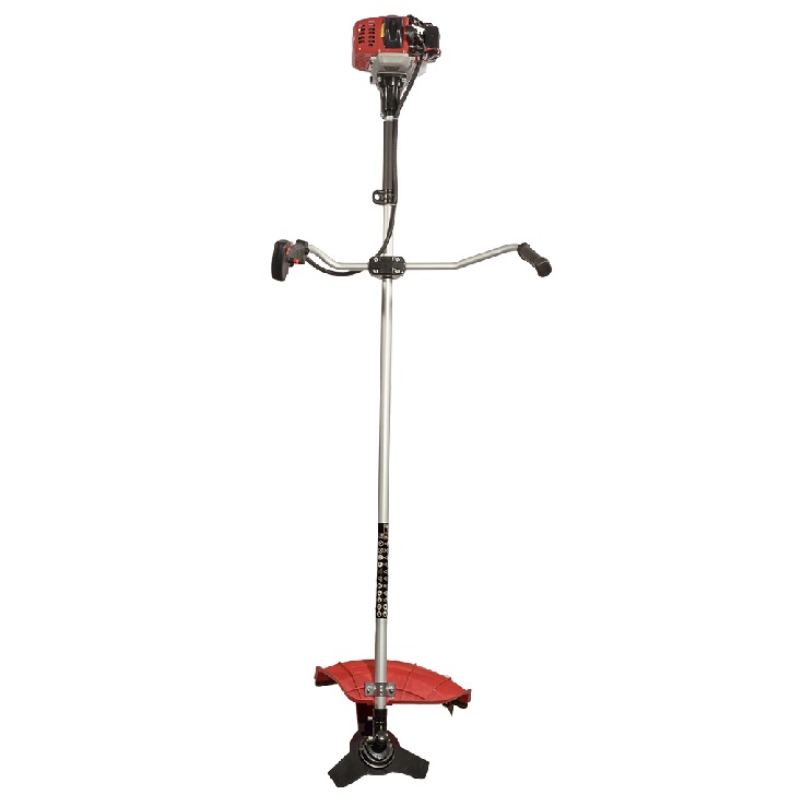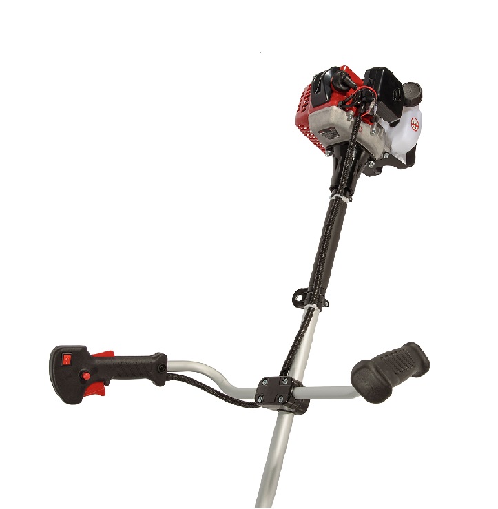 Модель оборудована прочной цельной алюминиевой штангой, которая повышает жесткость конструкции и устойчивость к нагрузкам. Дополнительная защита топливного бака снижает риск его повреждения во время эксплуатации. Наплечный ремень равномерно распределяет вес инструмента, повышая комфорт при длительном использовании. Двуручная эргономичная рукоятка с возможностью отдельной регулировки каждой части позволяет точно настроить положение рук оператора, улучшая управляемость косой и повышая безопасность выполнения работ.