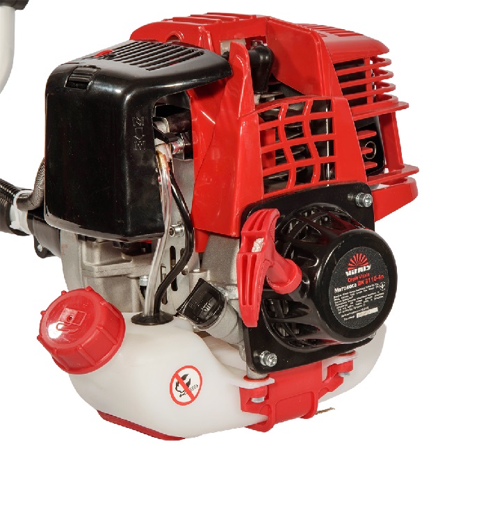 Мотокоса реализована с использованием современных технических решений, которые повышают практичность и результативность работы. Уменьшенная вибрационная нагрузка снижает напряжение в руках оператора, благодаря чему инструментом можно пользоваться длительное время без лишней усталости. Встроенный топливоподкачивающий механизм («праймер») упрощает запуск силового агрегата и сокращает время подготовки оборудования к использованию.