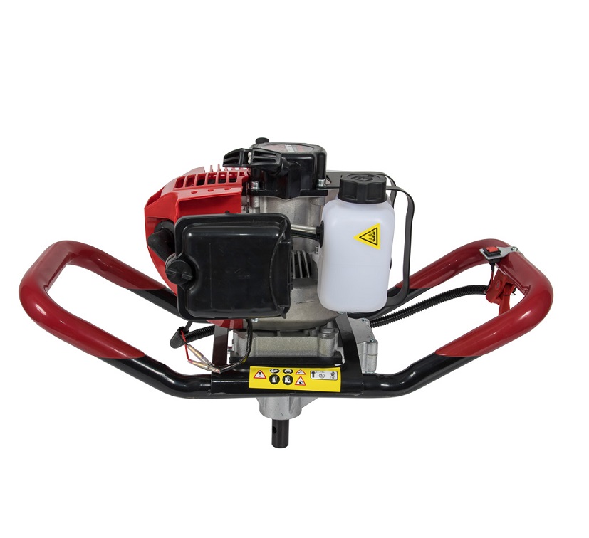 Бензиновый мотобур Vitals BUM 52n представляет собой моторизированное механическое устройство для бурения отверстий разного диаметра и глубины в почве под посадку деревьев, установку столбов, опор ограждений, направляющих труб при строительстве заборов. По своей конструкции изделие относится к простым классическим механизмам. Вращение бура (шнека) осуществляется через редуктор надежным одноцилиндровым двухтактным двигателем внутреннего сгорания с воздушным охлаждением. Экономичный двигатель объемом 52,0 см³ и мощностью 2,5 л.с. работает на смеси бензина Аи-92 с маслом для двухтактных двигателей в пропорции 25:1. Ее готовят непосредственно перед применением и заливают в бак 1,25 л. Внутренняя часть цилиндра хромирована, что в несколько раз увеличивает срок службы поршневой группы – основного движущего узла изделия.