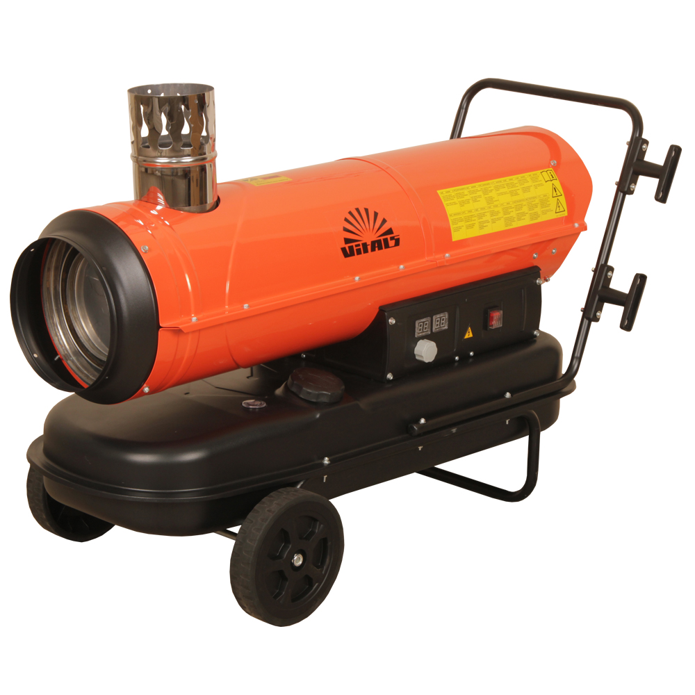 Дизельный обогреватель с непрямым типом нагрева Vitals DHC-301 относится к промышленному отопительному оборудованию, работающему на дизельном топливе. Данная модель незаменима в тех случаях, когда имеется возможность осуществить вывод отработавших газов наружу помещения через специальный газоотвод. Дизельный обогреватель Vitals DHC-301 – компактное мобильное устройство, предназначенное для эффективного обогрева производственных и вспомогательных помещений большого объема (строительные объекты, склады, гаражи, торговые павильоны, теплицы, оранжереи и т.д.). Данное устройство после включения сразу же готово к использованию по назначению и не требуют дополнительного времени на разогрев. Модель Vitals DHC-301, обладающая тепловой мощностью 30 кВт, способна быстро обогреть помещение площадью до 300 м² (высота потолка не более 3 м). При этом помещение должно быть надлежащим образом утеплено, а также иметь небольшие тепловые потери. Отсутствие выброса продуктов сгорания в отапливаемое помещение позволяет использовать эту модель для обогрева помещений, в которых присутствуют люди и животные.