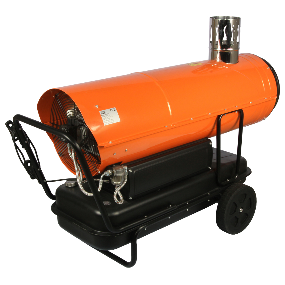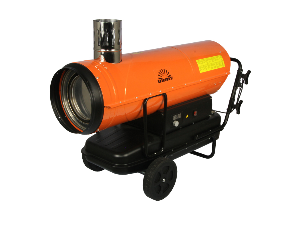 Дизельный обогреватель с непрямым типом нагрева Vitals DHC-501 относится к промышленному отопительному оборудованию, работающему на дизельном топливе. Данная модель незаменима в тех случаях, когда имеется возможность осуществить вывод отработавших газов наружу помещения через специальный газоотвод. Дизельный обогреватель Vitals DHC-501 – компактное мобильное устройство, предназначенное для эффективного обогрева производственных и вспомогательных помещений большого объема (строительные объекты, склады, гаражи, торговые павильоны, теплицы, оранжереи и т.д.). Данное устройство после включения сразу же готово к использованию по назначению и не требуют дополнительного времени на разогрев. Модель Vitals DHC-501, обладающая тепловой мощностью 50 кВт, способна быстро обогреть помещение площадью до 500 м² (высота потолка не более 3 м). При этом помещение должно быть надлежащим образом утеплено, а также иметь небольшие тепловые потери. Отсутствие выброса продуктов сгорания в отапливаемое помещение позволяет использовать эту модель для обогрева помещений, в которых присутствуют люди и животные.
