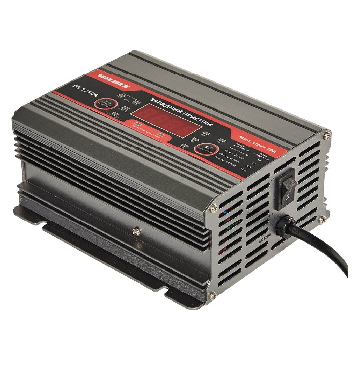 Зарядное устройство Vitals DS 1210A – новинка-2023 в линейке интеллектуальных зарядных устройств. Зарядное устройство предназначено для зарядки свинцово-кислотных аккумуляторных батарей автомобилей, мотоциклов, тракторов, катеров, газонокосилок, снегоходов, гидроциклов, другого промышленного и бытового оборудования. Источником электропитания изделия служит однофазная сеть переменного тока напряжением 230 В и частотой 50 Гц. Устройство относится к «интеллектуальным» зарядным устройствам инверторного типа и предназначено для использования в стационарных условиях на паркингах, в гаражах и т. д. Возможно использование также в «полевых условиях» при наличии передвижных источников электропитания. Изделие выполнено одним электронным инверторным блоком, оборудовано микропроцессором, который оценивает состояние АКБ и устанавливает силу зарядного тока и максимальное напряжение, что позволяет эффективно зарядить АКБ и продлить срок ее службы.