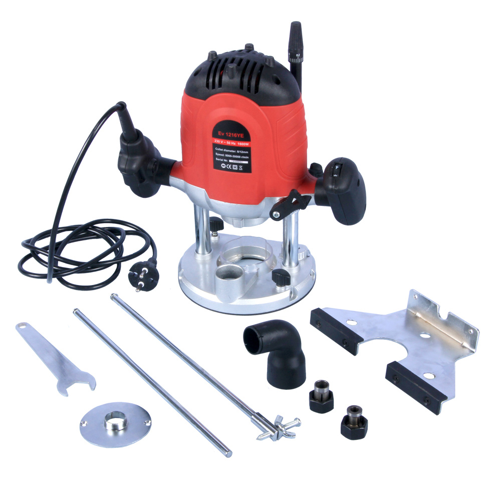 Фрезер Vitals Master Ev 1216YE представляет собой очень компактный электроинструмент, который предназначен для выполнения целого ряда задач фрезерования – вырезания пазов, продольных отверстий и силуэтов профилей, копировального вырезания, а также сверления отверстий в древесине, ДСП, ОСП и фанере. Благодаря мощности 1600 Вт, фрезер Vitals Master Ev 1216YE способен работать с высокой производительностью. Данная модель оборудована электронной системой управления частоты оборотов холостого хода, позволяющей устанавливать частоту в пределах 8000-30000 оборотов в минуту. Система плавного пуска в свою очередь уменьшает пусковой ток, нагрузку на электродвигатель и исключает момент рывка фрезера в момент его включения.