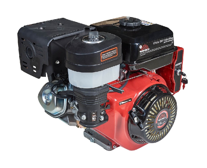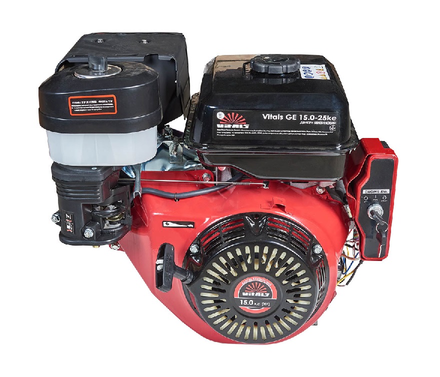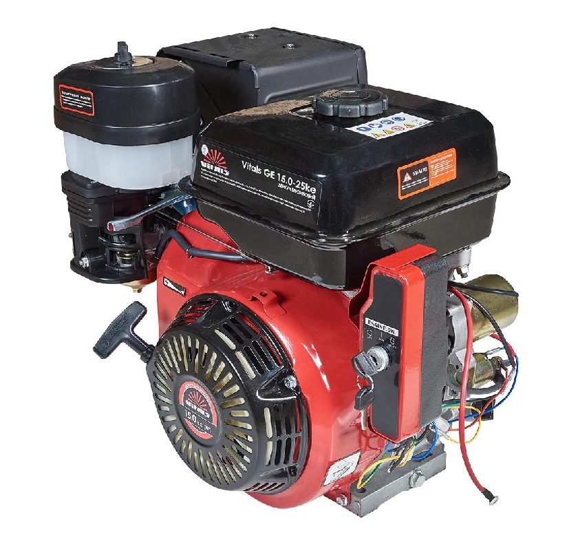 Двигатель внутреннего сгорания Vitals GE 13.0-25ke — универсальный бензиновый одноцилиндровый четырехтактный двигатель общего назначения c воздушным охлаждением. Двигатель внутреннего сгорания Vitals GE 13.0-25ke мощностью 13,0 л. с. и рабочим объемом 389 см3, может использоваться в составе мини-электростанций, в сельскохозяйственной технике: мотоблоках, мотокультиваторах, косилках, самоходных шасси, ирригационных и оросительных системах, в строительном оборудовании: виброплитах, ударных трамбовках, бетономешалках, компрессорах, насосах и помпах. Крепление двигателя — универсальное. Высокий уровень качества комплектующих, профессиональная сборка и двухуровневая фильтрация воздуха, которая обеспечивается поролоновым фильтром и масляной ванной, гарантируют длительный срок эксплуатации двигателя.
