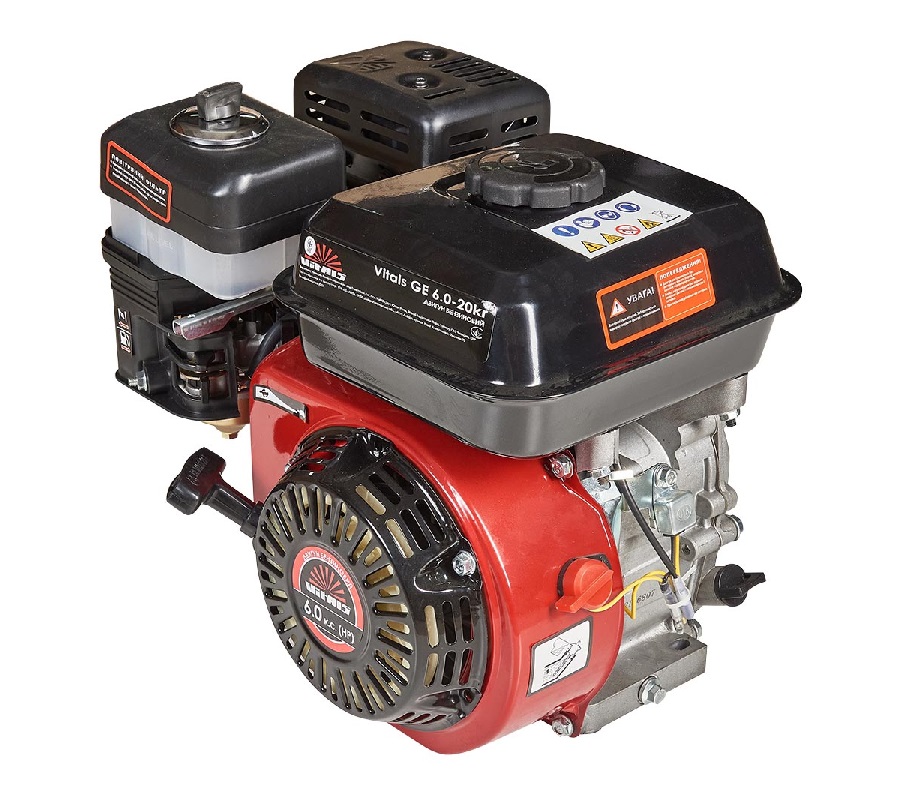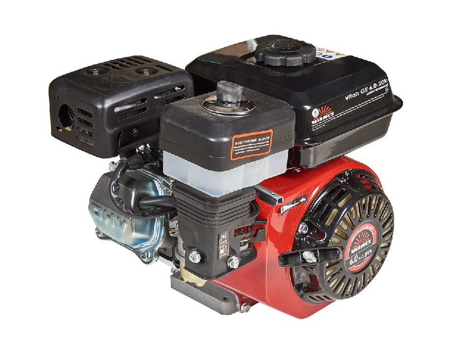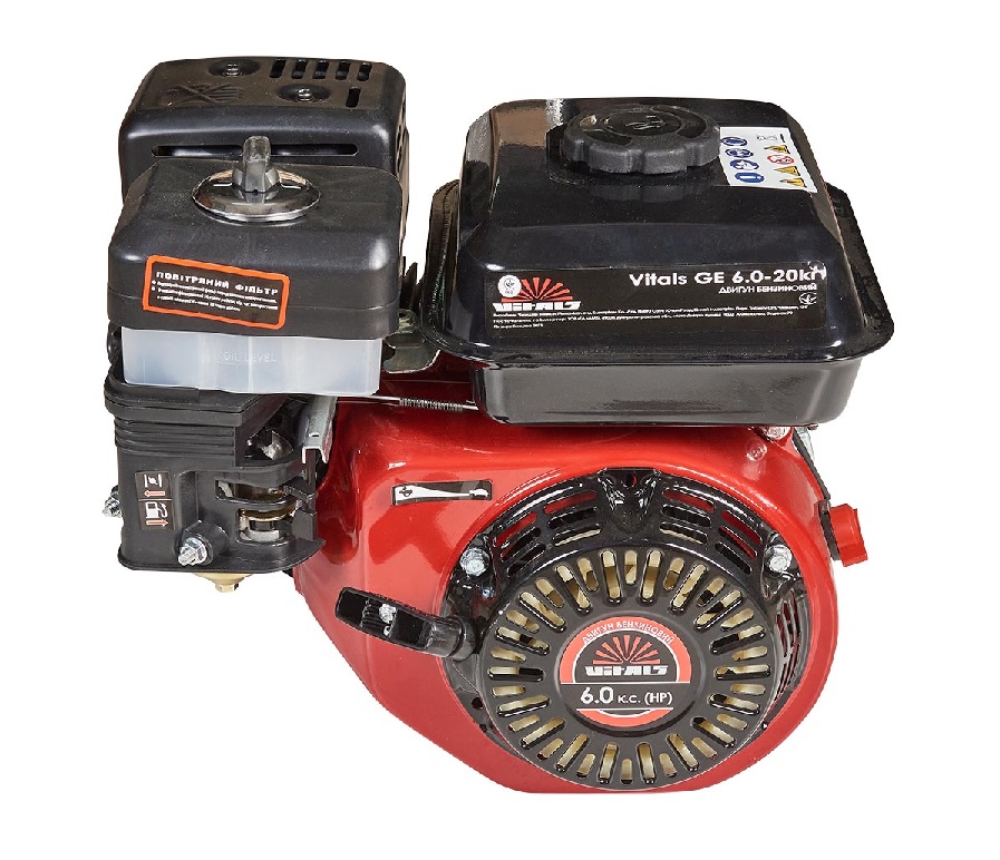 Двигатель внутреннего сгорания Vitals GE 6.0-20kr — универсальный бензиновый одноцилиндровый четырехтактный двигатель общего назначения c воздушным охлаждением. Отличительной особенностью данной модели является наличие редуктора, который понижает скорость вращения выходного вала до 1800 об/мин. Двигатель внутреннего сгорания Vitals GE 6.0-20kr мощностью 6,0 л. с. и рабочим объемом 196 см3, может использоваться в составе мини-электростанций, в сельскохозяйственной технике: мотоблоках, мотокультиваторах, косилках, самоходных шасси, ирригационных и оросительных системах, в строительном оборудовании: виброплитах, ударных трамбовках, бетономешалках, компрессорах, насосах и помпах. Крепление двигателя — универсальное. Высокий уровень качества комплектующих, профессиональная сборка и двухуровневая фильтрация воздуха, которая обеспечивается поролоновым фильтром и масляной ванной, гарантируют длительный срок эксплуатации двигателя.