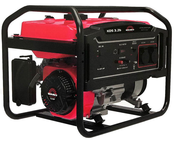 Генератор Vitals Master KDS 3.2b оборудован надежным 4-тактным бензиновым двигателем внутреннего сгорания и высококачественным щеточным синхронным альтернатором, способным вырабатывать переменный электрический ток максимальной мощности 3,6 кВт. Немаловажно, что обмотки ротора и статора генератора - 100% медь! Двигатель и генератор переменного тока установлены на прочной металлической раме (с дополнительной защитой топливного бака) через демпферные опоры, которые существенно снижают вибрацию агрегата и предотвращают его перемещение в процессе эксплуатации. Запуск двигателя осуществляется ручным стартером. Топливный бак, установленный на агрегате, имеет емкость 15 л, благодаря чему миниэлектростанция способна непрерывно в течение 10-15 часов обеспечивать устойчивой электроэнергией дом, дачу, гараж или складское помещение. На данном силовом агрегате установлен современный автоматический регулятор напряжения (AVR), обеспечивающий стабильное выходное напряжение во всем диапазоне нагрузок. Качество энергии электростанции позволяет смело использовать ее для обеспечения электропитанием бытовых и специальных потребителей, сложного электронного оборудования, а также средств связи (телевизоров, компьютеров, холодильников, отопительных котлов, насосов, электродвигателей и т.д.). Для защиты от перегрузки электрической цепи предусмотрены автоматические предохранители переменного и постоянного токов.