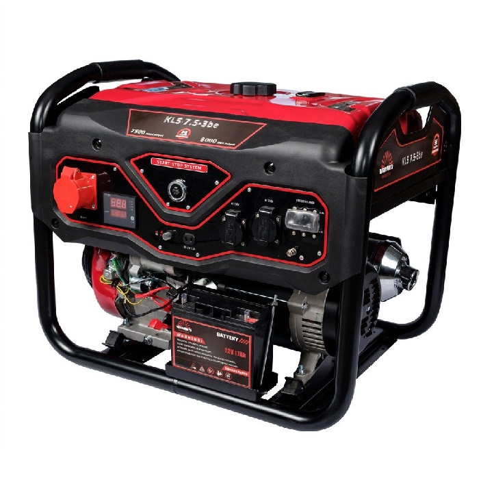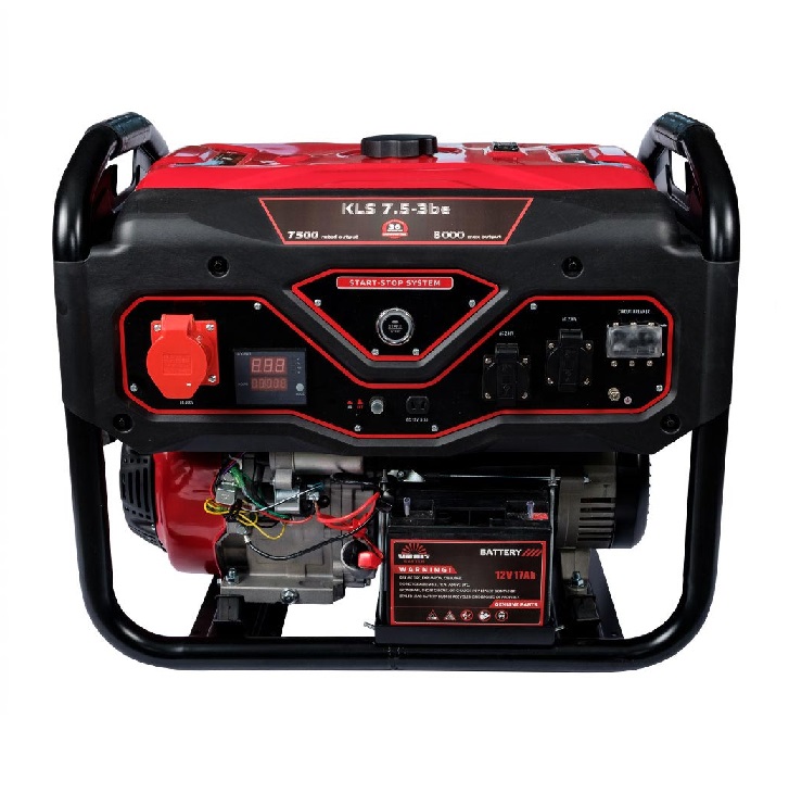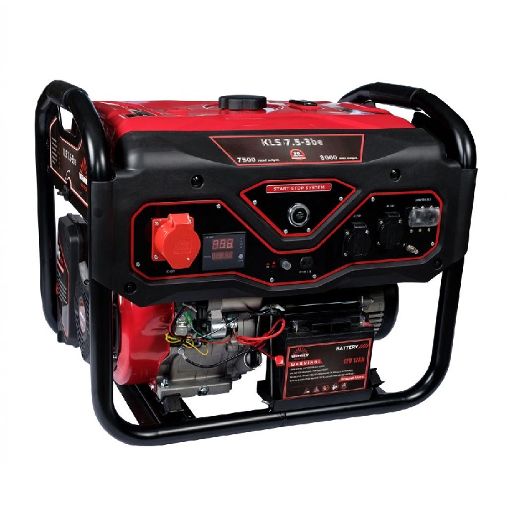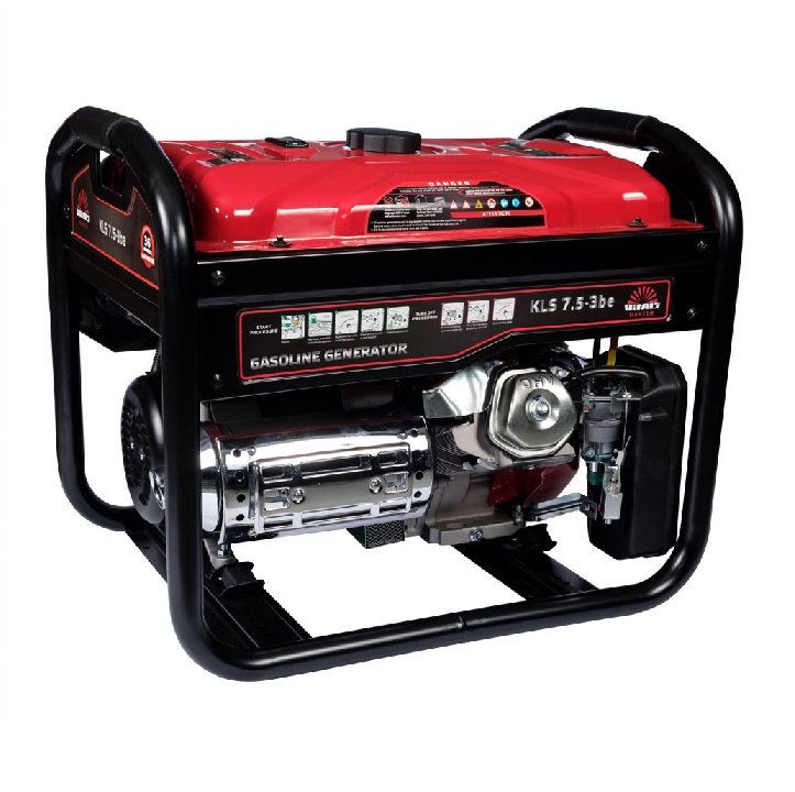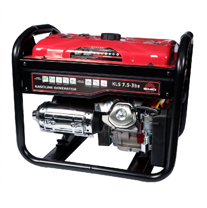 Бензиновый генератор Vitals Master KLS 7.5-3be – компактная переносная силовая установка, предназначенная для аварийного или резервного электропитания бытовых потребителей однофазного переменного тока напряжением 230В / 400 В частотой 50 Гц. Генератор оборудован надежным 4-тактным бензиновым двигателем внутреннего сгорания и высококачественным щеточным синхронным альтернатором, способным вырабатывать переменный электрический ток максимальной мощности 8,0 кВт (10,0 кВА). Немаловажно, что обмотки ротора и статора генератора - 100% медь! Двигатель и генератор переменного тока установлены на прочной металлической раме (с дополнительной защитой топливного бака) через демпферные опоры, которые существенно снижают вибрацию агрегата и предотвращают его перемещение в процессе эксплуатации. Запуск двигателя осуществляется либо ручным стартером, либо электрическим.