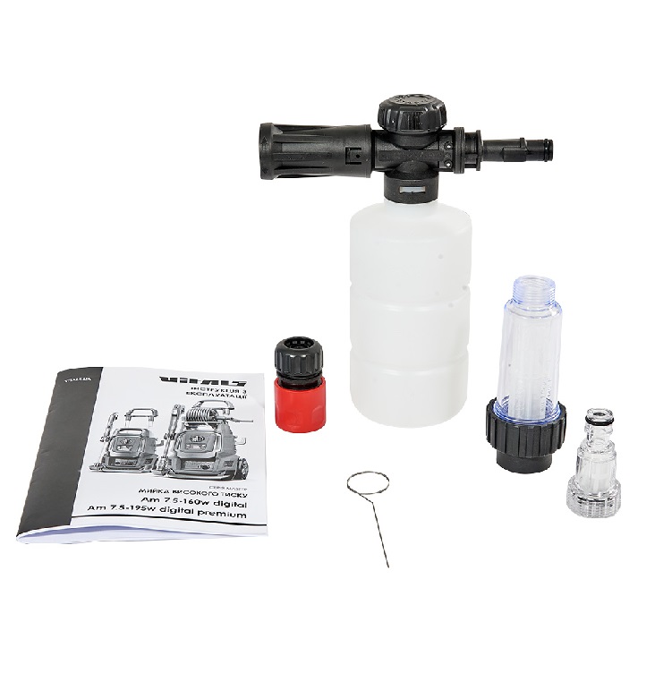 Мойка высокого давления Vitals Master Am 7.5-195w digital premium – высококачественный компактный бытовой инструмент, предназначенный для эффективной очистки поверхностей от загрязнений струей воды под высоким давлением. Данная модель характеризуется высокой производительностью. Используется в домашнем хозяйстве для очистки от грязи фасадов и элементов зданий, садовой мебели, деревьев и др., для мытья автомобилей, катеров, мотоблоков, газонокосилок и другой сельскохозяйственной техники. Приводной электродвигатель и насос высокого давления объединены в блок. Рабочий инструмент – пистолет с форсункой – подсоединен к насосу длинным семиметровым шлангом высокого давления с металлической оплеткой. Чтобы шланг не занимал слишком много места, не мешал работе и перемещению, мойка оснащена специальной катушкой для намотки шланга. Для удобства перемещения мойка оснащена колесами и телескопической ручкой. Сенсорная панель позволяет управлять давлением подачи воды для максимально эффективной и в то же время деликатной очистки разного типа поверхностей. Цифровая панель позволяет выбрать один из трех запрограммированных режимов (минимальный / средний / максимальный). На пистолете реализовано дистанционное беспроводное управление режимами давления струи с помощью вынесенных на рукоятку сенсорных кнопок. Таким образом, для изменения давления воды нет необходимости подходить к мойке. Мойка оснащена коллекторным электродвигателем мощностью 2400 Вт. От перегрузки и перегрева двигатель защищает датчик температуры.