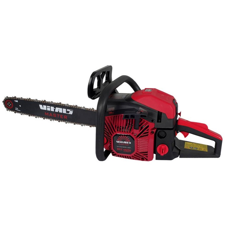 Бензопила цепная Vitals Master BKZ 4523o 18“ AluMagnio предназначена для быстрой и эффективной обрезки кустарника и веток в саду, а также спиливания деревьев и распиливания их на колоды. Она сочетает в себе высокое качество, надежность в работе, простоту в процессе эксплуатации и обслуживания. Данная модель оснащена экономичным бензиновым двухтактным двигателем мощностью 2,3 л.с. и максимальной частотой вращения коленвала 11500 об/мин. Коленчатый вал у этой пилы — усиленный кованый, что обеспечивает длительную бесперебойную работу двигателя. На изделие установлена 18-дюймовая шина c цепью премиум качества. Данный показатель длины шины принято считать оптимальным для выполнения работ в быту, в том числе и с древесиной большого диаметра. Благодаря скорости цепи, равной 20,0 м/с, обеспечивается очень высокая производительность работы.