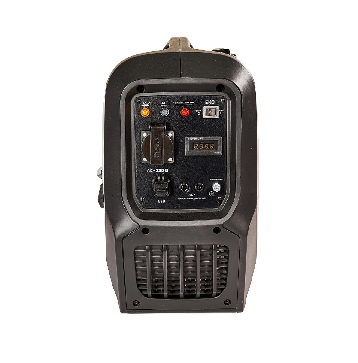 Снижает до 65 дБ рабочий шум, что существенно расширяет сферы применения генератора. Также кожух предотвращает механические повреждения основных элементов генератора, наведение электромагнитных помех от генератора и поражение напряжением (защитное заземление). Экономичный режим работы генераторной установки подразумевает работу двигателя на пониженной скорости вращения, что обеспечивает более длительную работу генераторной установки с нагрузкой от потребителей до 50% от номинального уровня. При повышении нагрузки инверторный блок автоматически переводит двигатель в режим большей интенсивности. Генератор оборудован двумя USB-портами (type-A и type-C), которые можно использовать для зарядки гаджетов.