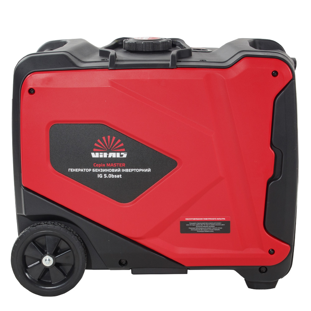 В генераторе Vitals Master IG 5.0bsat применен четырехтактный бензиновый двигатель с верхним расположением клапанов. Инновационная конструкция крышки стартера и крыльчатки охлаждения предотвращает перегрев двигателя. Глушитель промышленного типа обеспечивает усиленное шумопоглощение, улучшенный отвод и распределение тепла. Шум и вибрации при работе дополнительно гасят демпферные опоры, которыми двигатель крепится к жесткой металлической раме.