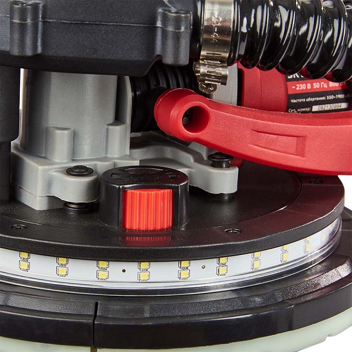 Подошва шлифовальной машины наделена липучкой, которая позволит очень быстро сменить абразивную бумагу с необходимым размером зерна. Диаметр подошвы составляет 225мм. Двигатель имеет номинальную мощность 800 Вт. Обмотка двигателя выполнена из меди. Это увеличит срок службы инструмента. Для удобства использования машины шлифовальной Vitals Master SK 2390GL на модель установлен увеличенный сетевой кабель длинною 4 метра. Система автоматического всасывания пыли позволит использовать инструмент без строительного пылесоса, что значительно повысит уровень Вашей безопасности и сэкономит Ваши средства. Большая сумка для сбора пыли обеспечит увеличенный цикл работы без остановки для очистки мешка, а удобная ручка на мешке сделает Вас портативным при работе. Немаловажным является тот факт, что модель оснащена ступенчатой регулировкой скорости вращения в диапазоне от 550 до 1900 об/мин. Это позвонит увеличить спектр работ и подобрать оптимальную скорость при обработке разных материалов.