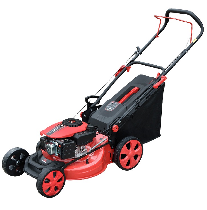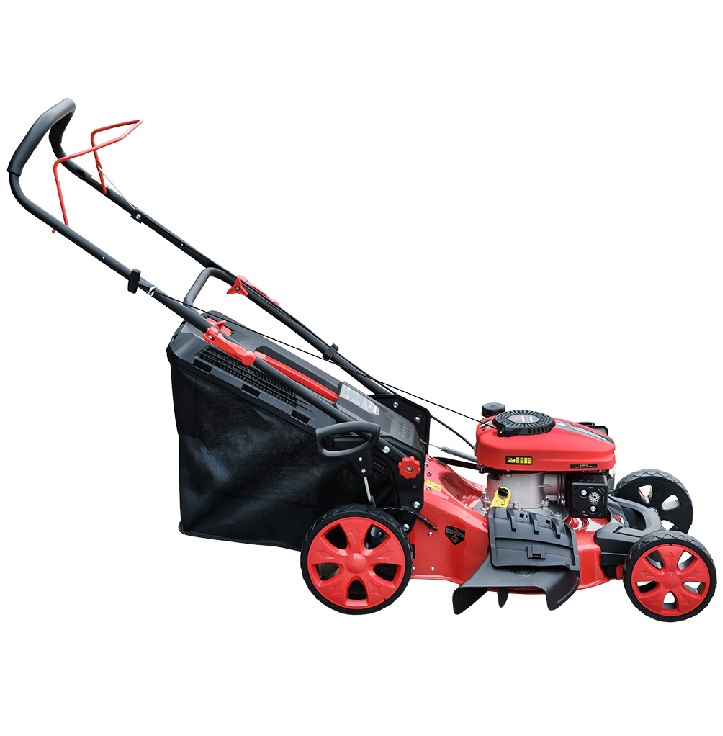 Рукоятка имеет усиленную конструкцию и специальное мягкое покрытие, которое повышает удобство удержания, уменьшает скольжение ладоней и делает процесс работы более комфортным. Газонокосилка разработана с учетом высокого уровня комфорта во время обслуживания газонов и придомовых территорий различной площади. Эргономично продуманная конструкция помогает снизить нагрузку на пользователя во время длительной работы, а оптимально сбалансированный вес обеспечивает легкое управление даже на участках со сложным рельефом. Рукоятка имеет удобную форму, что обеспечивает естественное положение рук и улучшает контроль над инструментом. Колесная система с плавным ходом позволяет без лишних усилий перемещать газонокосилку по травяному покрытию, в частности по неровным или наклонным поверхностям. Использование бензинового двигателя обеспечивает полную автономность работы, устраняя зависимость от электросети и повышая мобильность во время скашивания. Вместительный топливный бак способствует длительной непрерывной эксплуатации, сокращая потребность в частых остановках для дозаправки.