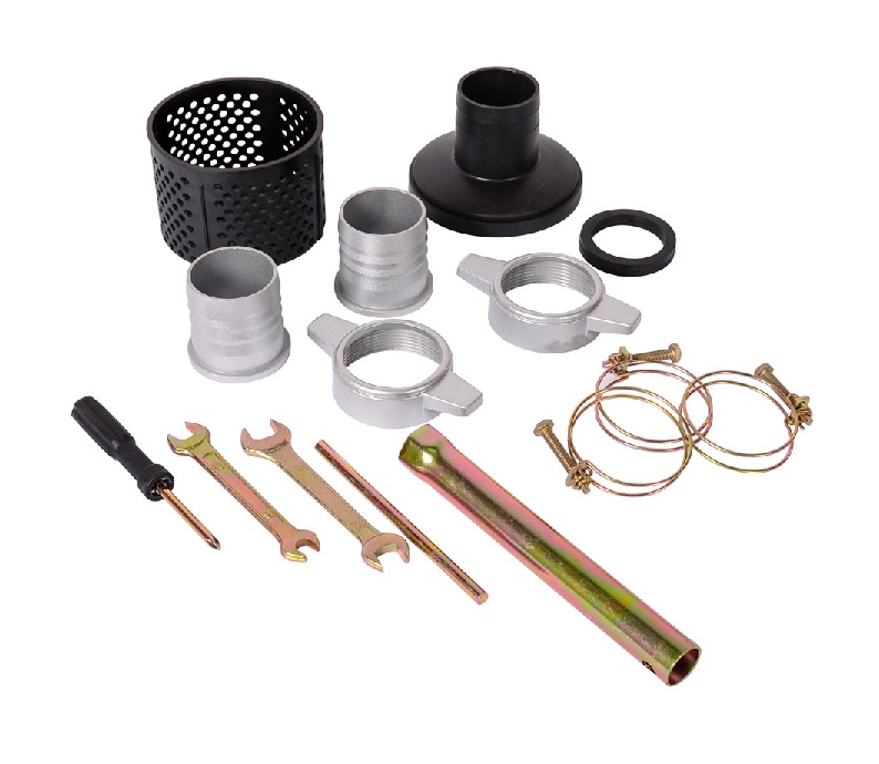 Вода перекачивается при помощи рукавов, которые подсоединяются к всасывающему и нагнетательному патрубкам, диаметром 50 мм. Для надежности соединения в комплект входит набор хомутов, штуцеров, гаек и уплотнителей.