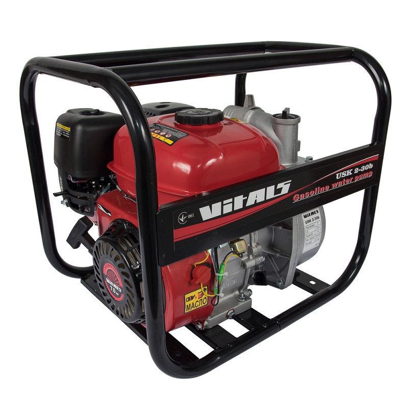 Мотопомпа бензиновая Vitals модель USK 2-30b – это мобильное устройство, способное снабжать участок водой со скоростью 30 куб.м/ч. Мотопомпы Vitals можно использовать для полива, дренирования почвы, орошения, осушения небольших колодцев и басейнов, наполнения емкостей. Также устройство можно применять в качестве вспомогательного оборудования для борьбы с пожаром. Благодаря надежности механизмов и простоте конструкции система управления мотопомп Vitals интуитивно понятна. А при правильной эксплуатации устройство станет для Вас долговечным помощником. Основные узлы мотопомп Vitals состоят из одноцилиндрического 4-тактного бензинового двигателя внутреннего сгорания (мощностью 6,5 л.с.) и отцентрированного водяного насоса, смонтированного на одной раме.