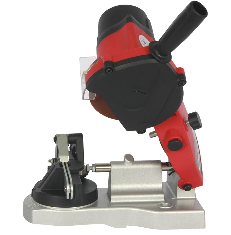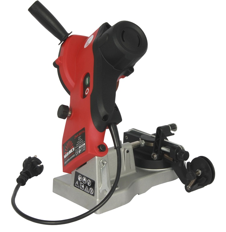 Станок имеет эргономичный дизайн, продуманную конструкцию с возможностью крепления к столу, позволяя тем самым выполнять работу с максимальным комфортом. Для освещения рабочей области используется светодиодная подсветка. Высокая точность и качество заточки цепи пил достигается за счет легкой и быстрой регулировки глубины и угла заточки, механизмов автоматической фиксации цепи, а также фиксации ее обратного хода. В работе используются точильные диски наружным диаметром 104 мм с посадочным диаметром 22,2 мм и толщиной 3,2 мм. Вопросам безопасной эксплуатации станка уделено особое внимание. Прочный пластиковый защитный кожух, прикрывающий точильный диск, позволяет безопасно наблюдать за процессом заточки и одновременно исключает возможность случайного травмирования. В комплект поставки станка включено качественно разработанное руководство пользователя, полностью отображающее порядок эксплуатации и обслуживания изделия.