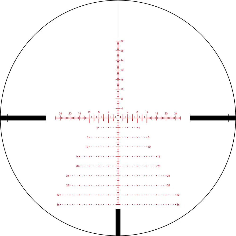 Сітка в першій фокальній площині FFP - шкала прицільної сітки залишається пропорційною масштабованого зображення. Вимірювання сітки дійсні при будь-яких збільшеннях.