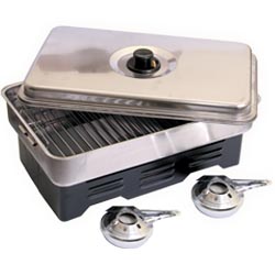 Перед тем как приступить к процессу копчения, необходимо собрать каптильню. Для этого нужно установить основу коптилки, и поместить 2 горелки в отделения круглой формы, предназначенные для них, предварительно наполнив горелки некоторым количеством жидкости для розжига, которая продается в любом супермаркете или заправке. Затем берем контейнер из нержавеющей стали, в который помещается продукт для копчения. На дне имеется овальное углубление, куда необходимо насыпать равномерным слоем 3-4 столовых ложки опилок. Горелки нагревают дно, опилки начинают тлеть, так образовываться дым, нужный для копчения. Сверху опилок ставится поддон для сбора жира, затем устанавливается решетка, на которую кладется рыба. Затем все это накрываем крышкой. Поджигаем горелки, ставим контейнер сверху основы, периодически проверяя готовность продукта. Количество выходящего дыма можно регулировать пропускным клапанам на крышке.