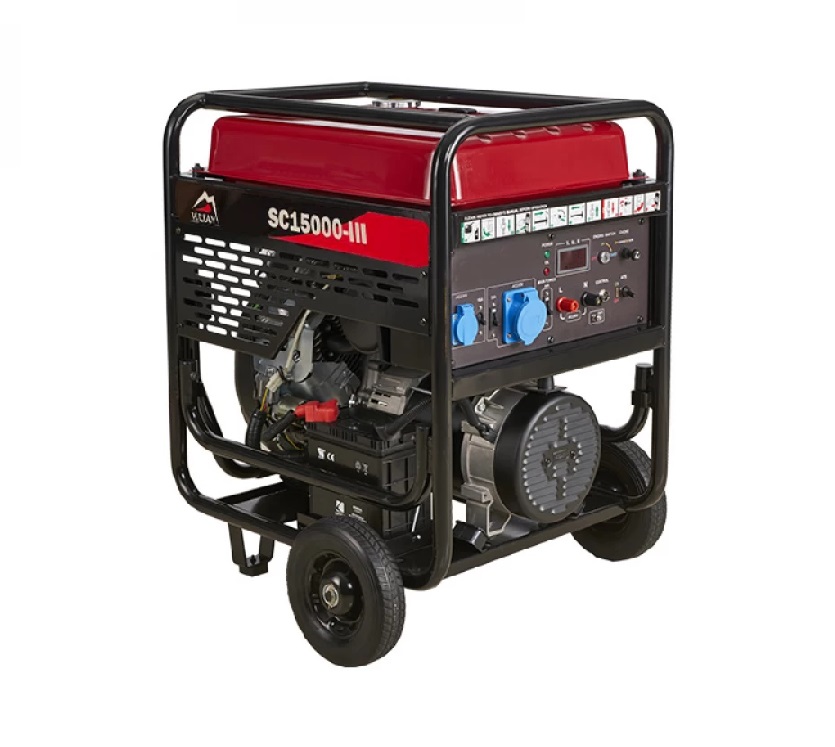 Бензиновый генератор Vulkan SC15000-III – оснащен надежным, устойчивым к работе в экстремальных условиях 4-х тактным двигателем марки GB750 с максимальной мощностью на выходе до 14 кВт. Идеальный вариант для обеспечения резервного питания электроприборов в большом доме. Во время работы полного бака топлива объемом 45 л хватит до 6 часов при 100% нагрузке. Защита при низком уровне смазки. Удобная защищенная панель.