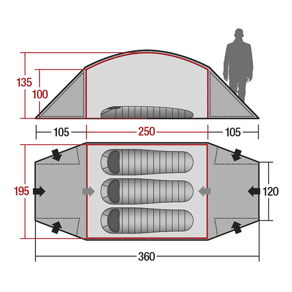 Внешняя палатка (ДхШхВ), мм: 3600 х 1 950 х 1350