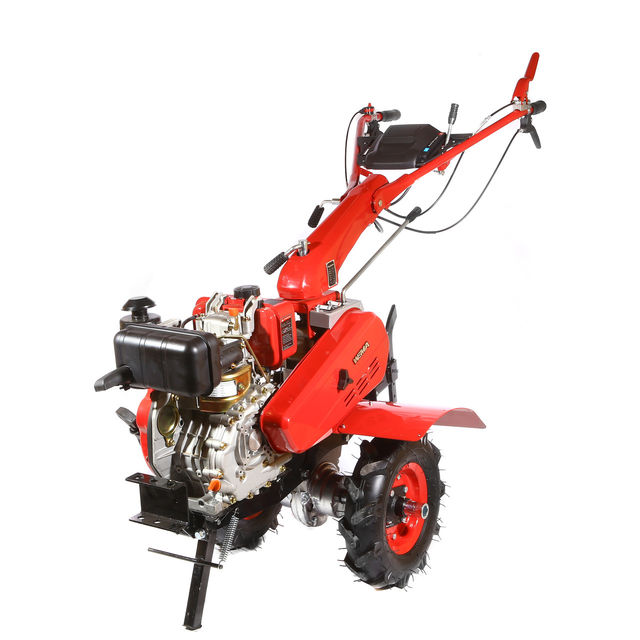 Дизельный мотоблок Weima WM 610 относится к типу профессиональных мотоблоков и позволяет реализовать все функции, присущие как легким, так и тяжелым мотоблокам. Использовать можно не только для домашнего хозяйства, но и для значительно больших объемов работ и разнообразных функций. Все узлы мотоблока изготовлены с запасом прочности для постоянного регулярного использования. Установлен дизельный двигатель 178F. Запускается с ручного старта. Установлен воздушный фильтр грибкового типа. Привод от двигателя ременного типа. Особенность мотоблока WM 610 в том, что установлено 3 ремня, а не 2, как на большинстве мотоблоков. Дополнительный ремень без потери тяговой мощности агрегата можно перебросить на различное навесное оборудование, например, роторную газонокосилку или использовать мотоблок стационарно. Спереди и сзади мотоблока установлены дополнительные мощные крепления для навесного оборудования.