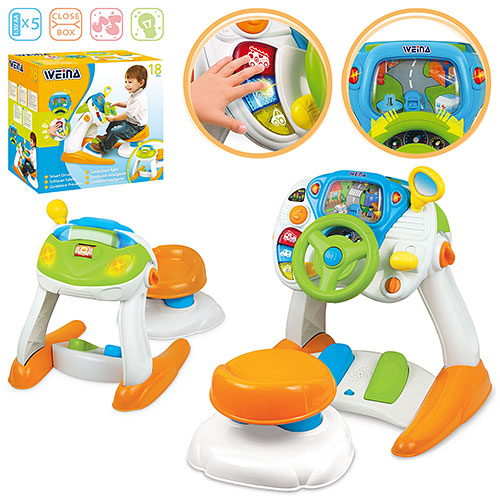 Детский автотренажёр со стульчиком Wiena 2108 имеет реальные функции авто: руль, тормоза, поворотники и коробка передач, зеркало, стульчик. Автотренажер издает реальные звуки мотора, 3 звука сирены, мигают огоньки и играет музыка. При повороте руля и переключчении коробки передач – соответсвующе движется машинка на экране; а при нажтии на педали появляется звук тормозов и разгона машины.