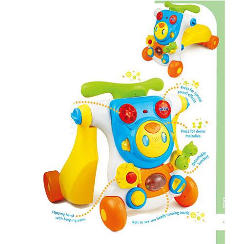 Ходунки-каталка развивающий центр 2 в 1 "Верхом на роботе" Weina - Вейна предназначены для детей от 9-ти месяцев. Эти ходунки созданы для того, чтобы помочь ребенку сделать его первые шаги и научиться уверенно стоять на ножках. У ходунков очень удобная для ребенка ручка, держась за которую он не будет бояться упасть и удариться. На передней панели много разных ярких кнопочек и трещоток, которые обязательно привлекут внимание малыша светом своих огоньков и приятными звуками.