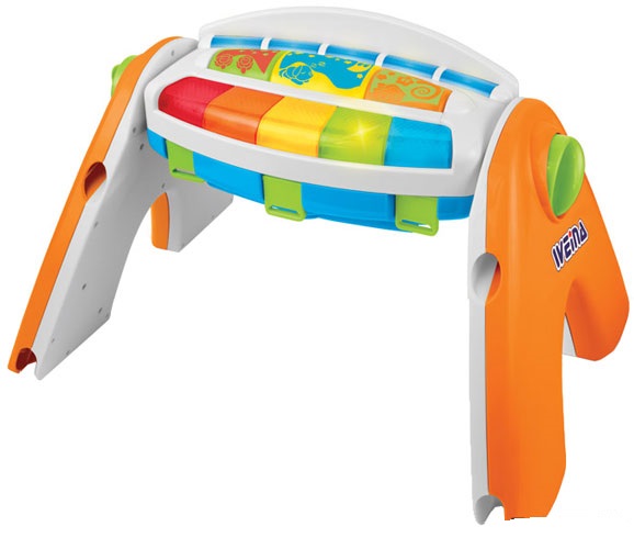 Ребенок стал хорошо сидеть и делать первые шаги — игрушку можно преобразовать в музыкальную клавиатуру. При нажатии на кнопки будет звучать музыка, включатся световые эффекты.