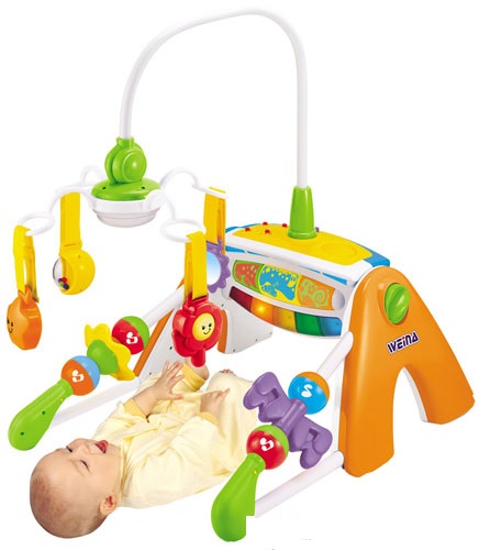 Эта многофункциональная игрушка включает: музыкальную карусель, ночник, музыкальный центр с игрушками (можно менять), клавиатуру.