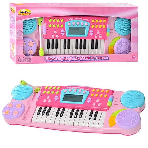 25-ти клавишный синтезатор с микрофоном и веселыми звуковыми эффектами;