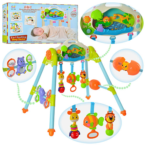 Многофункциональный развивающий центр 906 способствует развитию у ребенка воображения, мелкой моторики рук, координации движения, а также способности различать цвета. Яркие игрушки с игровой панелью. На игровой панели расположено множество занимательных элементов - кнопки со звуковыми и световыми эффектами. Многофункциональную игрушку можно использовать, как тренажер для младенцев, как активную музыкальную игрушку, а также можно подвешивать на кроватку.