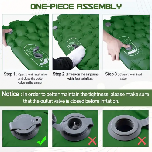 Особливість даного килимка у вбудованій помпі для ноги знизу. Не потребує додаткового насосу. Повне накачвання займає 2 хвилини.