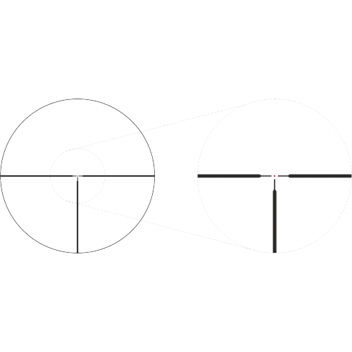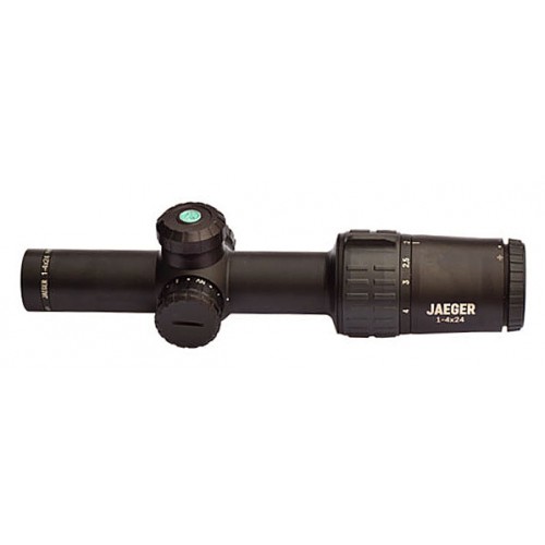 Прицельные метки Jaeger располагаются во второй (задней) фокальной плоскости – вне зависимости от выбранной кратности, метка остается тонкой и не перекрывает изображения цели. Центр прицельных меток подсвечивается. Колесо изменения яркости подсветки имеет промежуточные «нулевые» положения, что позволяет максимально быстро отключить подсветку, так же как и вернуться к предыдущему положению яркости. Интенсивность подсветки меняется в широких пределах, есть режим для использования прицела с установленным за окуляром прибором ночного видения.
