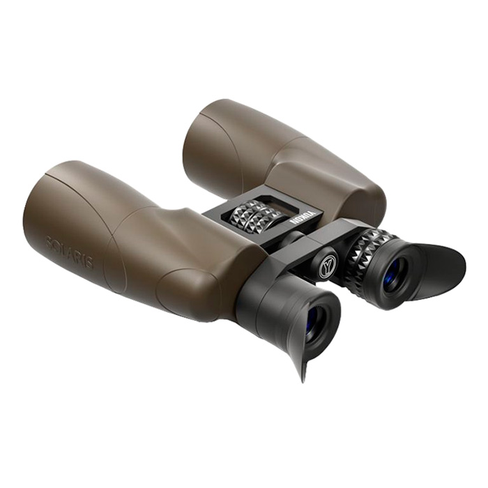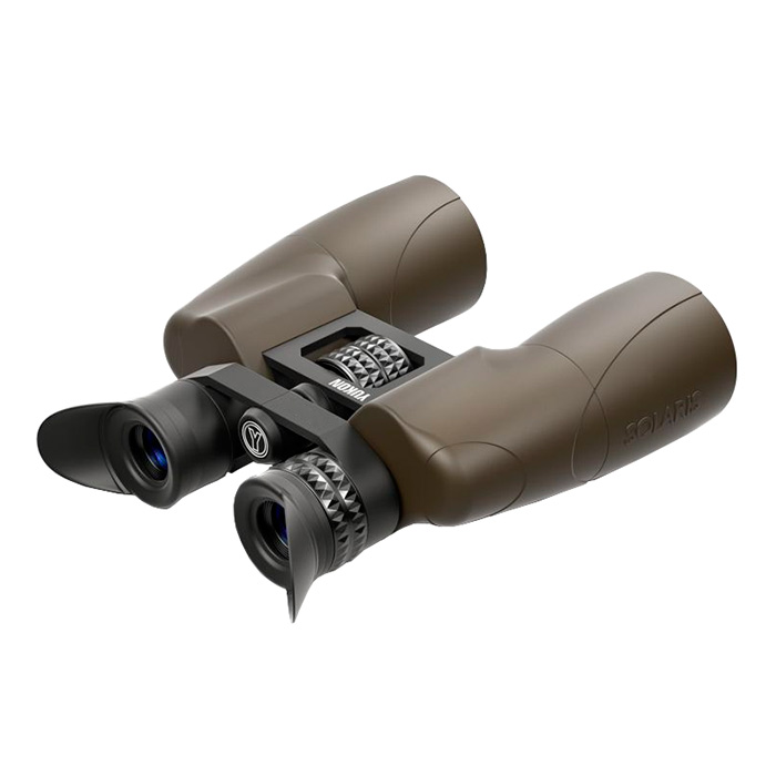 Yukon Solaris 7x50 WP обладает герметизацией класса IPX6, что делает бинокль устойчивым к водяным струям очень высокого давления. Прорезиненный корпус усиливает сцепление с руками или перчатками пользователя, что особенно важно во время дождя или снега. Конструкция бинокля основана на параллельных шарнирных соединениях тубусов с центральным мостом, внутри которого находится барабан фокусировки.