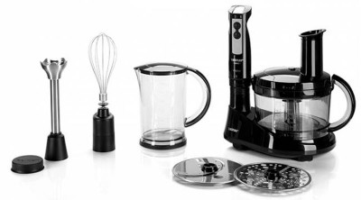 Комплектация измельчитель, насадка-блендер, насадка-венчик, двусторонние диски для шинковки, нарезания ломтиками, мерный стакан с крышкой, толкатель