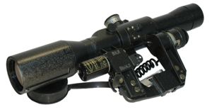 Прицел имеет параболическую дальномерную шкалу (дистанция 1000 м или 400 м) для цели высотой 1,7 м.