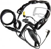 Эластичный Ларингофон с прозрачным звуководом,ушным звукоизолируюшим динамиком на витом кабеле, Vox/РТТ в линии и РТТ на палец, возможностью изменения конфигурации