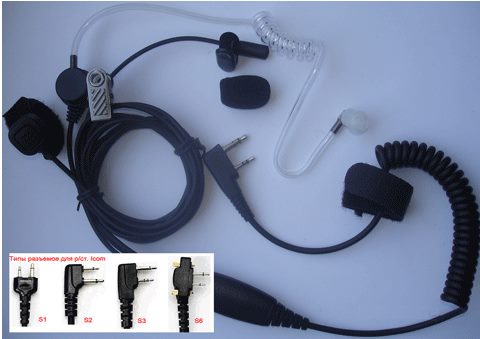 трехпроводная, скрытого ношения со звуководом, PTT на палец, S2 / S3 / S6