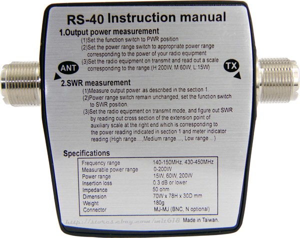 Портативный бюджетный измеритель мощности и КСВ  RS-40 NISSEI  позволяет производить следующие измерения: